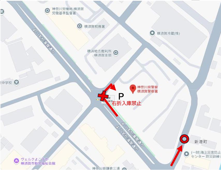 赤枠が警察署の駐車場なのでこちらから入れます。